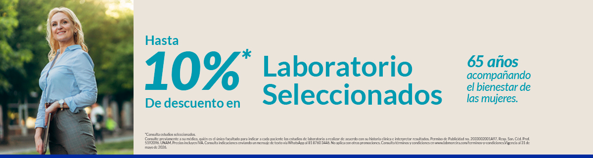 Consulte previamente a su médico, quién es el único facultado para indicar a cada paciente los estudios de laboratorio a realizar de acuerdo con su historia clínica e interpretar resultados. Permiso de Publicidad no. 2033002001A97. Resp. San. Céd. Prof. 5192096. UNAM. Precios incluyen IVA. Consulta indicaciones enviando un mensaje de texto vía WhatsApp al 81 8760 3446. No aplica con otras promociones. Consulta términos y condiciones en www.labmoreira.com/terminos-y-condiciones. Vigencia del 16 de marzo al 31 de mayo de 2026.